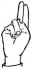 На ћирилици написано МИОДРАГ ДАНГУБИЋ састоји се из 15 слова [?]. Исписано ћириличном једноручном азбуком за глувонеме: